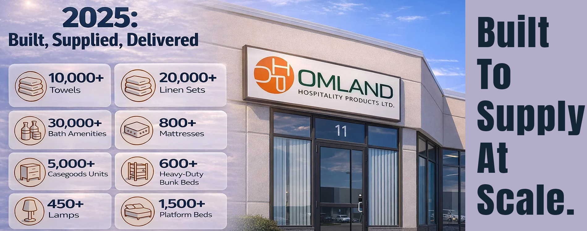 Welcome to Omland Hospitality – Canada’s trusted leader in hospitality solutions for nearly two decades. With a proud legacy of delivering exceptional products and personalized service, we cater to a diverse range of sectors, including hospitality, student housing, senior living, healthcare, workers’ camps, and emergency shelters.