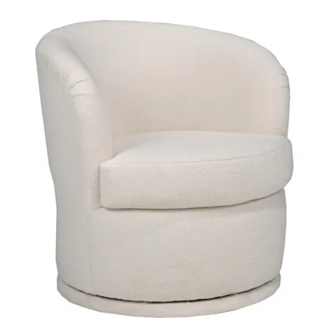 The 2104 Swivel Chair in Sippy White is a stylish and supportive compact swivel accent chair for commercial spaces. With its soft rounded back, space-saving design, and 360° swivel base, this chair offers comfort and mobility in a clean, modern package. Ideal for hospitality suites, retirement lounges, or upscale rental units, it brings warmth and elegance to any room.