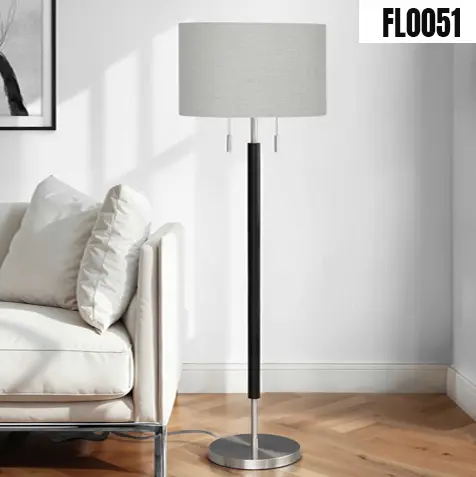 Enhance commercial and residential spaces with the Luminex 60″ Floor Lamp, a modern and sophisticated lighting solution. Featuring a sleek black and nickel metal frame topped with a chic grey drum fabric shade, this contemporary floor lamp brings style and functionality to hotels, BnBs, resorts, student housing, and office interiors.