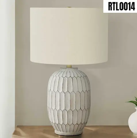 Beige linen-blend drum shade provides warm, ambient lighting for commercial and residential spaces.