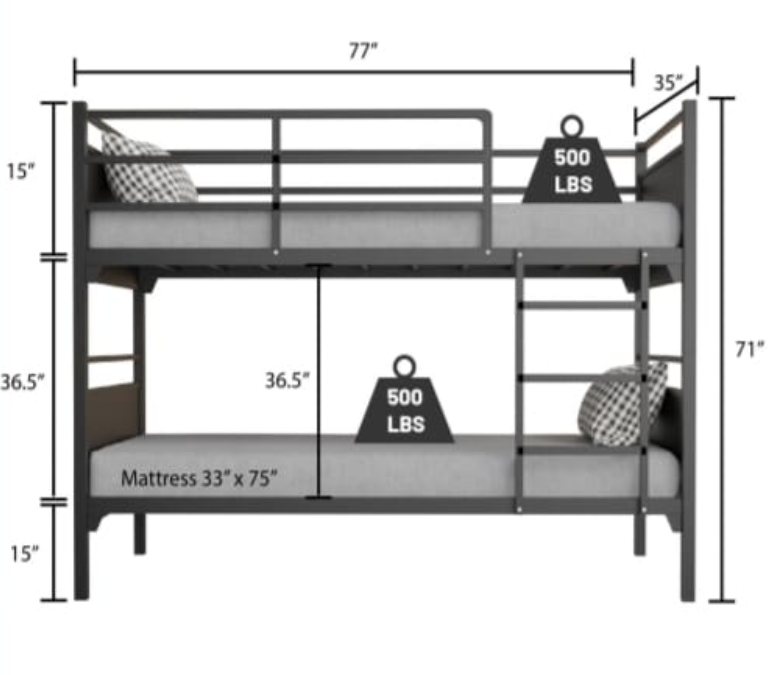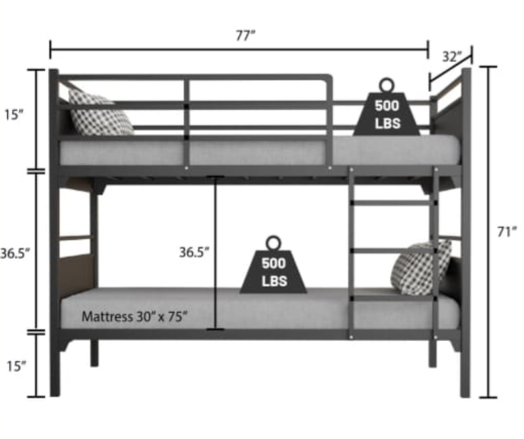 The Heavy-Duty Bunk Bed is built for strength, safety, and long-term performance in high-traffic environments. Designed with a 500 lbs per sleeper load capacity, this institutional-grade bunk bed is ideal for shelters, dorms, workforce housing, and transitional accommodations.